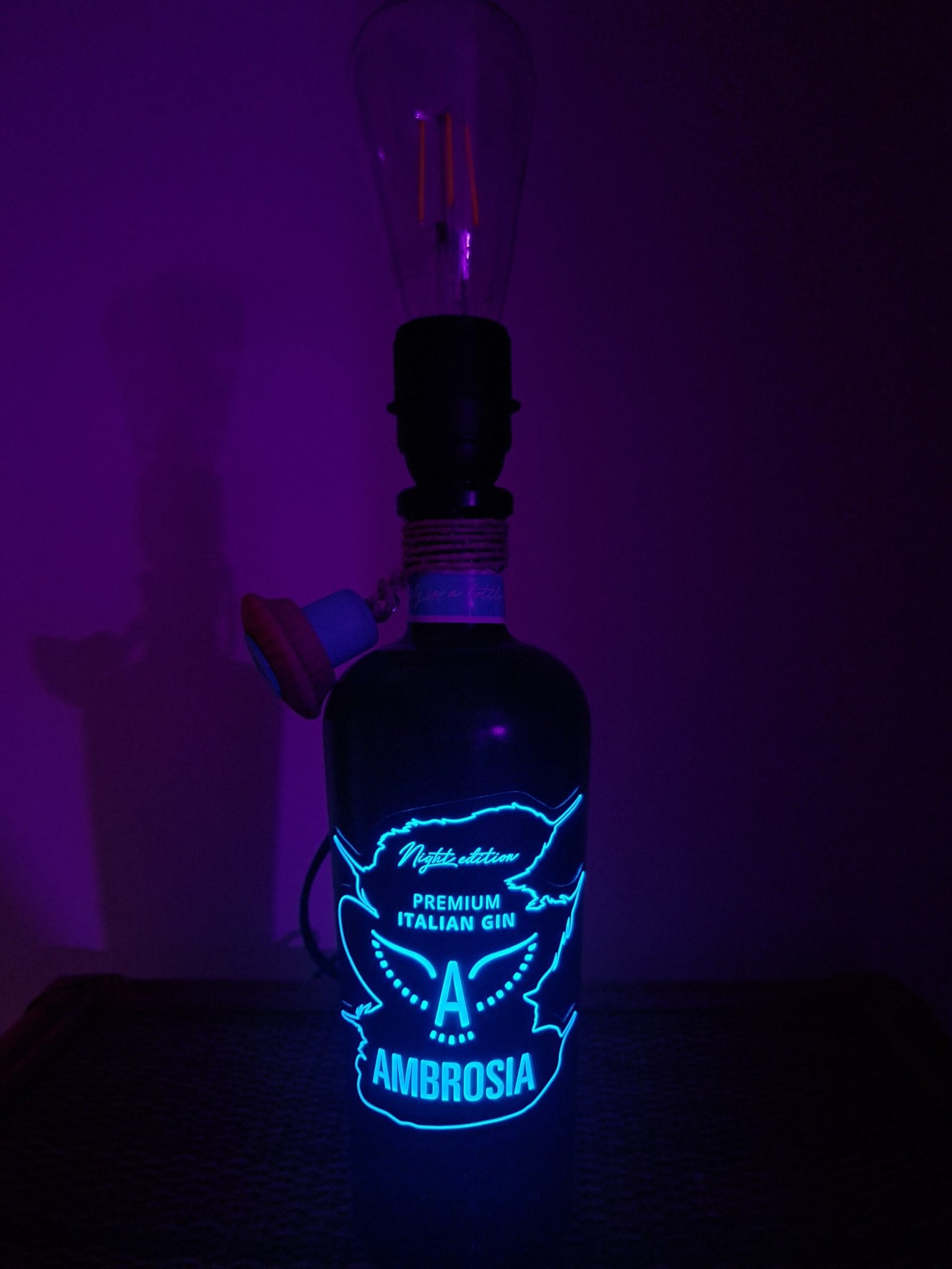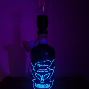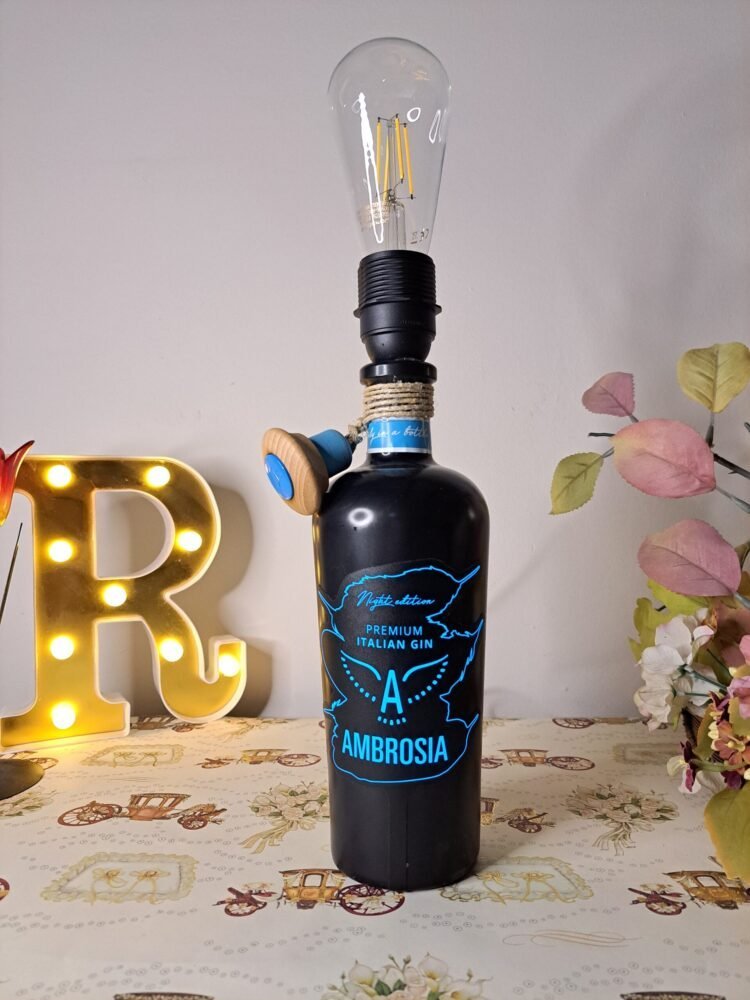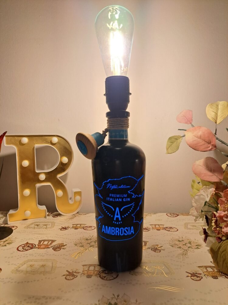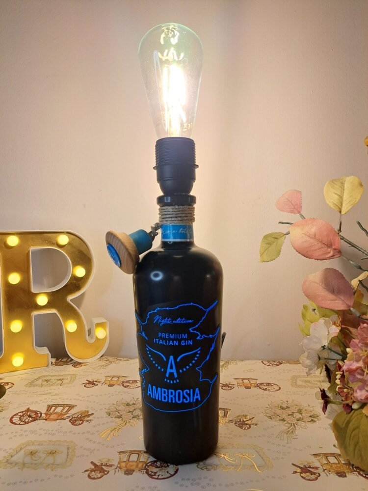 Ciò che veramente distingue questa lampada è la sua unicità e versatilità. La linea pulita e il design elegante la rendono ideale per vari ambienti: dalla sala da pranzo al soggiorno, fino agli uffici creativi. Grazie all’etichetta luminosa, la Lampada Bottiglia Nera Ambrosia diventa un punto luce decorativo, che non solo illumina gli spazi, ma crea anche un’atmosfera calda e accogliente.