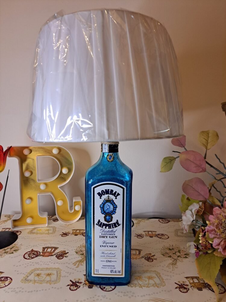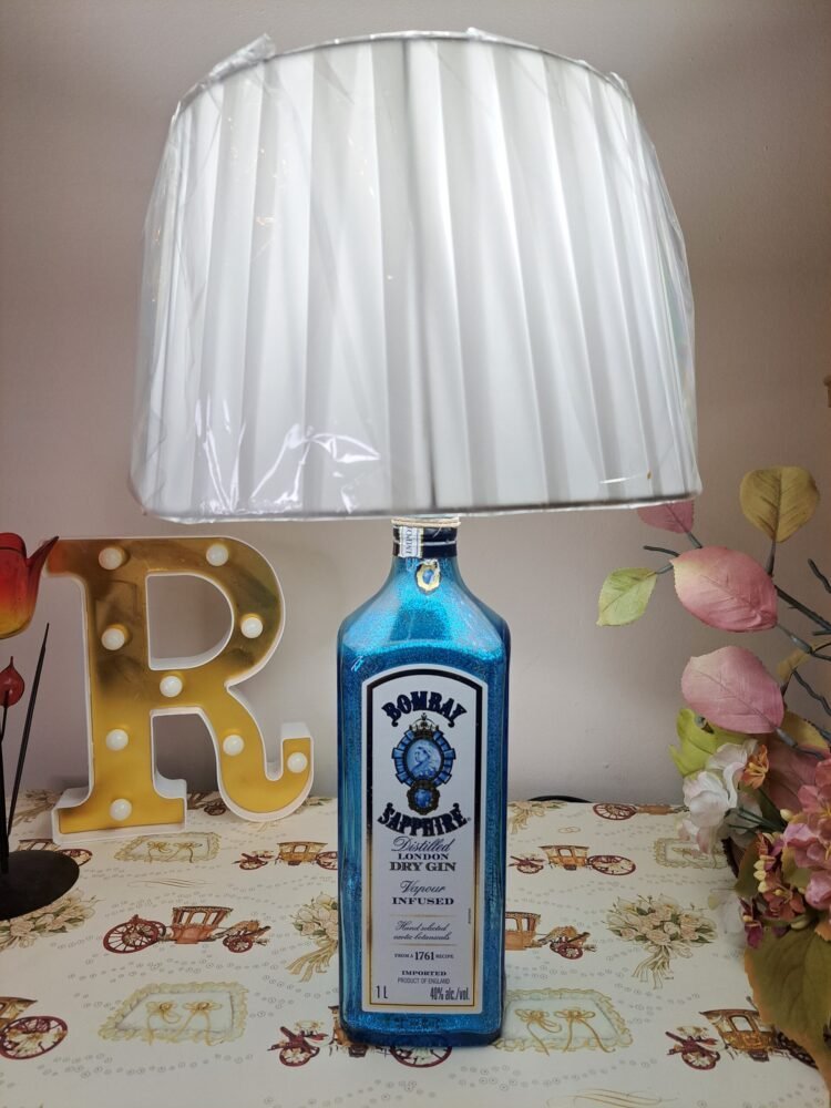 Porta un tocco di classe e originalità nella tua casa con la Lampada Bottiglia Bombay Sapphire Gin con paralume. Realizzata a partire dall’iconica bottiglia di Bombay Sapphire Gin, questa lampada è tanto un complemento d’arredo quanto un elemento di stile unico. Che tu voglia aggiungere un tocco raffinato al tuo salotto o creare un’atmosfera accogliente nella tua camera da letto, questa lampada si adatta perfettamente a qualsiasi ambiente.